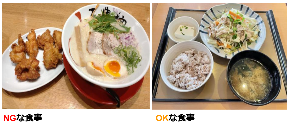 例としてNGな食事とOKな食事の写真を見ていきましょう。